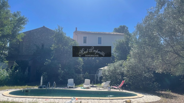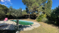 LE JARDIN ARBORÉ DE 1801m2 AVEC SES ARBRES D'OMBRAGE POUR L'ÉTÉ SA TERRASSE ET SA PISCINE .